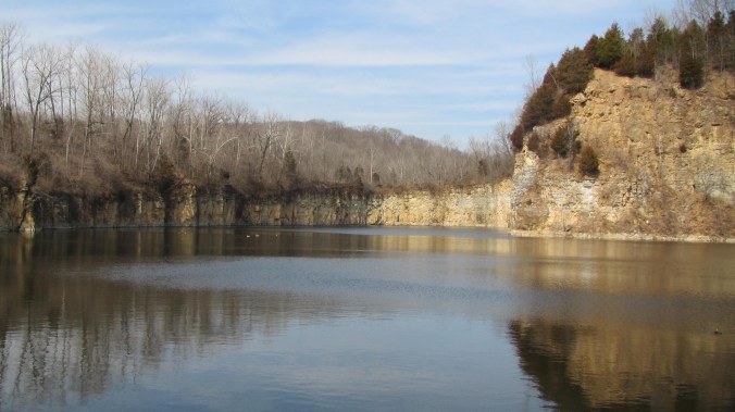 Cyclists whizzing by the abandoned Hamburg Quarry on the KATY Trail in St. Charles County rarely slow down to take a gander at its sheer limestone walls or the placid waters below.  Most aren’t even aware the historic excavation site is within a stone’s throw of the popular bicycle path.